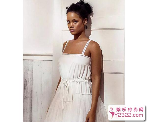 Rihanna摒弃了她不修边幅的服装,换上天使般的无袖白裙,打造了不同寻常的端庄模样,以宣传她的的新app“Anti Diary”。