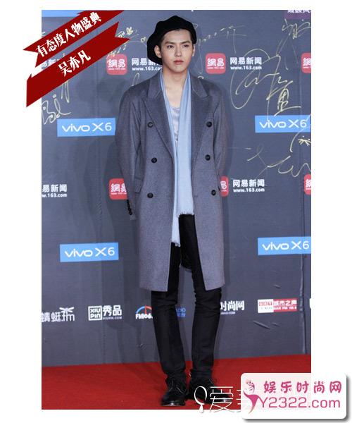 吴亦凡身着Burberry 2016春夏男装系列亮相红毯。鲜少见他穿这种风格,英伦风倒也很适合。不同于稍微有点骚气的秀场搭配,吴亦凡将裤子换成了黑色,显得文艺又不会太“娘”,帽子也很书生气,点赞~