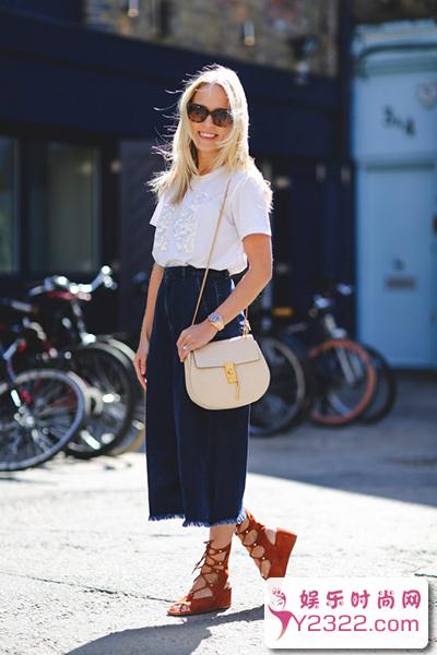 当然,除了卷裤脚和穿不规则裤脚之外,还在流行中的9分阔腿裤、裙裤也是不错的选择。