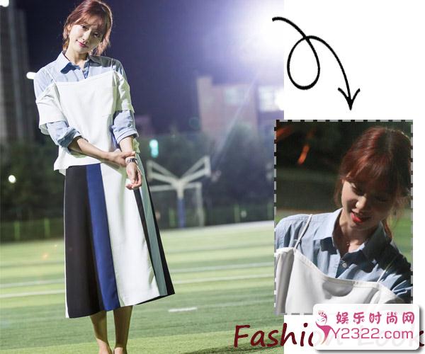 编编表示这个搭配实在难以忘怀,背心加T你见过,衬衫加吊带一字肩你敢尝试吗?欧尼还选择拼色长布裙,编编还是可望不可即啊▼