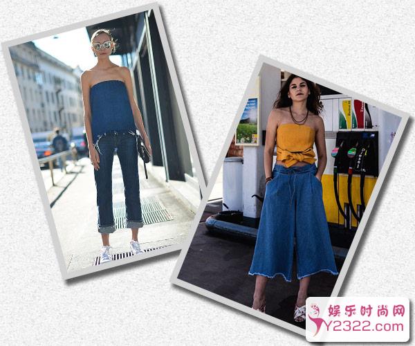 还是从最简单的开始,裹胸上衣搭配什么?最常规、最不会出错的肯定就是牛仔裤。