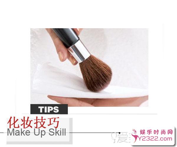 3、用腮红刷蘸取腮红后,轻轻掸掉部分色粉,避免上色过重,妆面不自然。