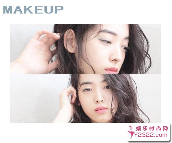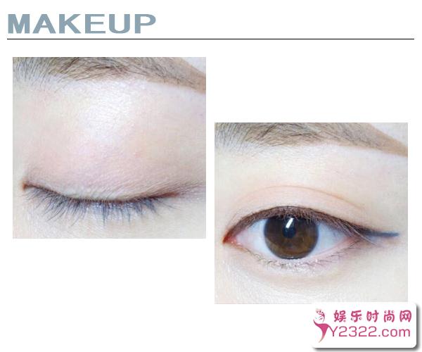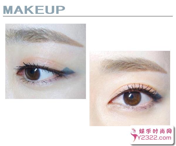 2.眼睛尾巴部分画细长的蓝色眼线,可以用粉色先打底,喜欢裸妆,淡妆的妹子很适合这款眼线;