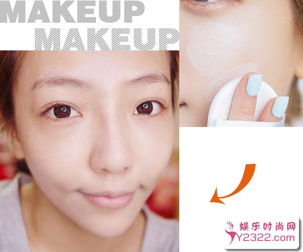 在用气垫粉饼大面积的轻轻拍打过一遍,就可以使底妆有发光的感觉