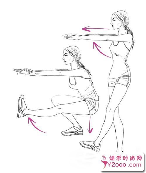 弓步蹲:纤双腿,肌肉弹弹的