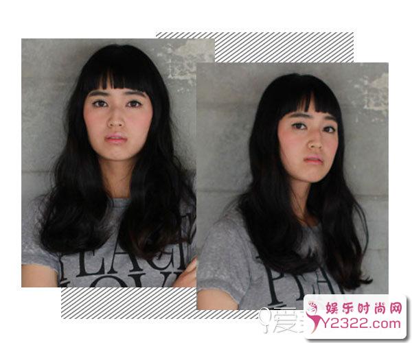 板直的齐刘海突显了额头,波浪卷烫的黑发也有与众不同的感觉。