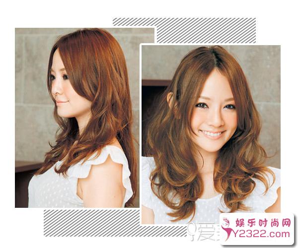 这款发型上部分垂直下部分卷曲,发型整体松散蓬起,带来一种轻盈弹润的感觉,中分的刘海顺直且贴紧脸部,有效地收小了脸型。