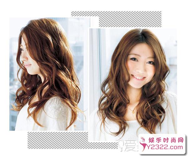 棕色的长发卷成了大波浪的卷曲,造型弹润丰盈,头发的弧线有效地修饰着脸部的曲线,使你显得光彩动人,自信且气场十足。