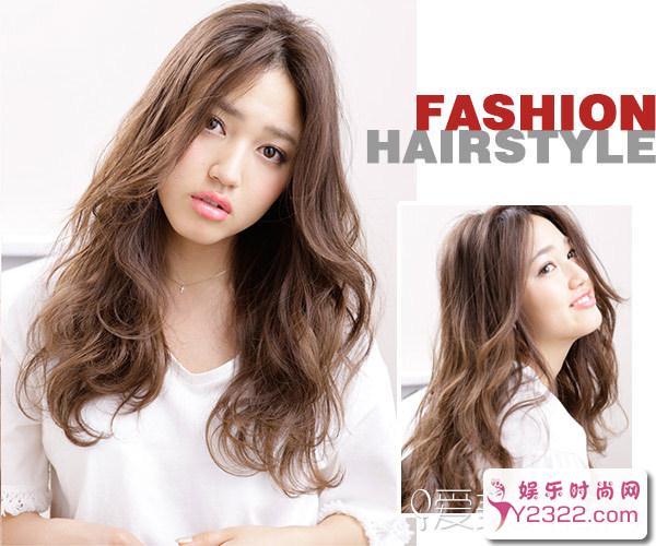 随意披散的大波浪卷发柔软蓬松造型突出,暖棕色的发色给人带来柔美妩顺的效果,发型整体感觉文雅娴淑,女神感十足。