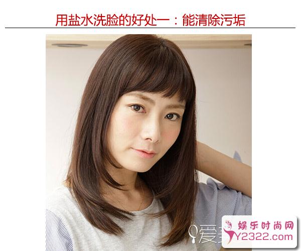 用盐水洗脸有很好的清洁和去污垢的效果,将一小勺细盐混合3到5滴的水,用手指轻轻的将其搅拌均匀,再将其从额头自上而下在脸上轻轻按摩,几分钟后,直到脸上盐颗粒呈白粉末状,用温水洗净即可。